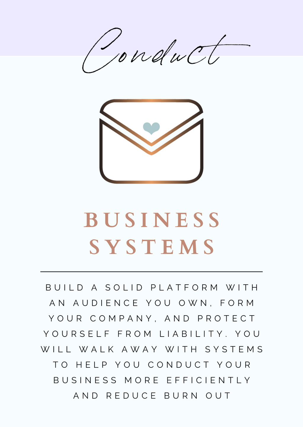- CONDUCT your business to be efficient, systemized, and generating multiple revenue streams