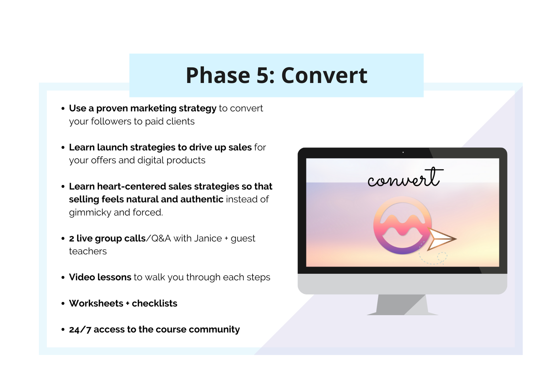 - CONVERT your followers into paying clients with a proven marketing strategy and launch system